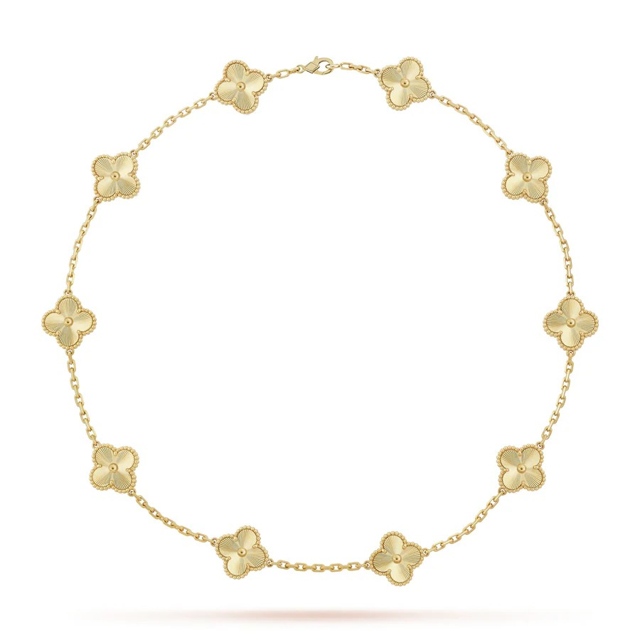 This custom 10K Clover Necklace is an incredible accessory with a vintage look. The luxurious clover leaf design features the luck motif, perfectly symbolizing the preciousness of life. Wear it to add a touch of luck and timeless elegance to any outfit.